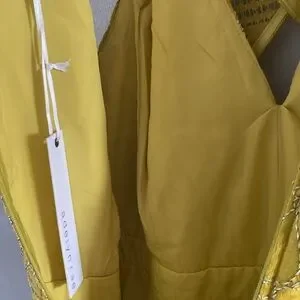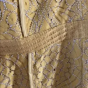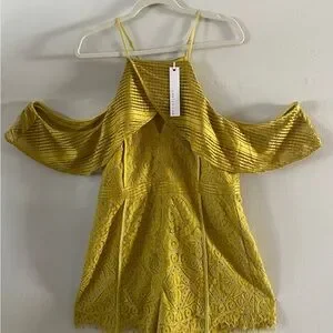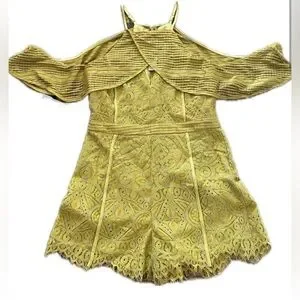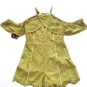The sleeveless romper features an embroidered pattern.Never worn very nice summery designed