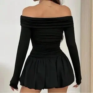 Black Off-Shoulder Long Sleeve Mini Bubble Dress Sz XS