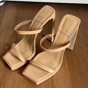 Jeffrey Campbell Blush Patent Square-Toe Double-Strap Block Heels