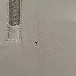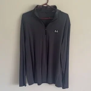 Lightweight performance pullover for active use. Half-zip mock collar for ventilation. Moisture-wicking, breathable fabric. Subtle chest logo detail. Sleek charcoal color for easy pairing. SMALL HOLE BY FRONT ZIPPER!!!