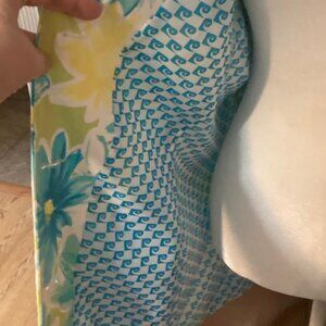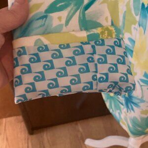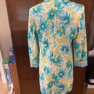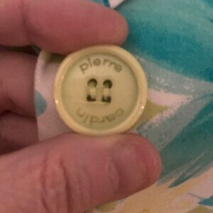 Check out this Colorful "Pierre Cardin" summer jacket - size 14P ~ Has 2 front pockets and colorful interior. When you roll up the sleeve cuff, it shows thru and gives a great contrast ! Jacket is 30" long from top of shoulder to bottom. Bust area is approx. 35" inches when jacket is buttoned. There appears to have been a repair on top right shoulder, but not very noticeable... I almost missed it ! See last 2 photos. Priced accordingly ! VERY good price on a designer "Pierre Cardin' piece !