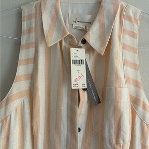 Chic midi dress with peach stripes. Sleeveless design with a collared neckline. Perfect for casual outings. Tie front, sleeveless dress with pockets. Brand new with tags, never worn!