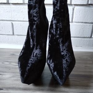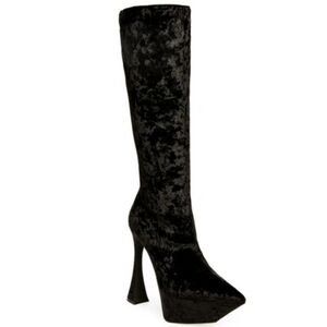 Jeffrey Campbell Shego Black Crushed Velvet Knee High Platform Boots size 6
