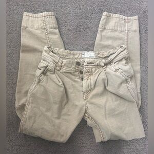 Free People Khaki Utility Pants | Button Fly Workwear Straight Leg | Size 25