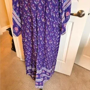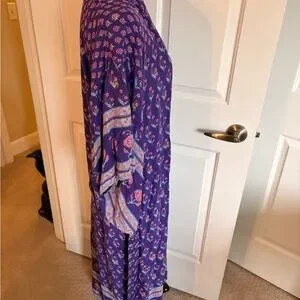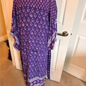 Spell Purple Floral Maxi Kimono with Pink & Light Blue Accents EC
