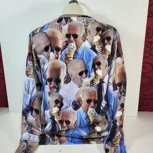 Joe Biden Eating Ice Cream Long Sleeve Crew Neck Sweater - Size XS