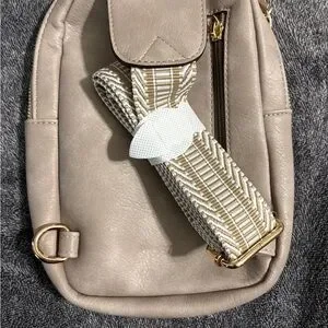 Elegant cream crossbody bag with a sleek design. Perfect for everyday use.