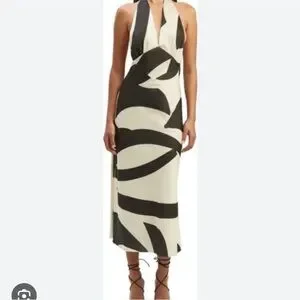 EUC worn once Bardot black ivory color block back zip halter satin feel dress midi 4 small s