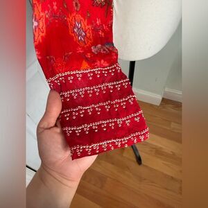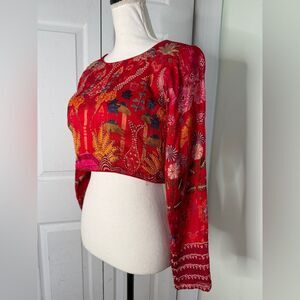 This beautiful vintage crop top is made of what feels like cotton and has beadwork and beautiful Asian inspired motifs. It's in great condition. It has built-in cups.