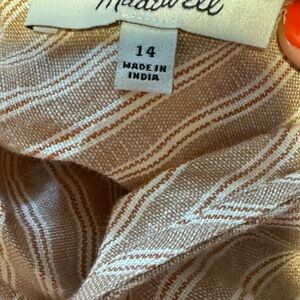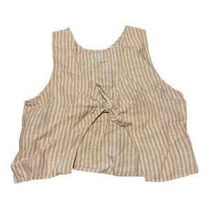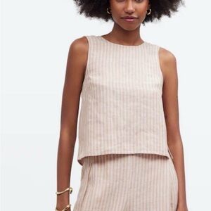 Madewell Beige & White Striped 100% Linen Open Tie Back Tank Top Size 14