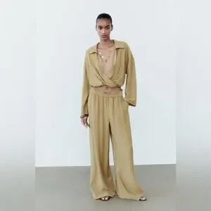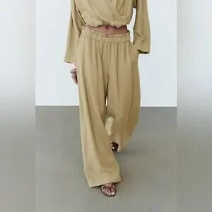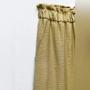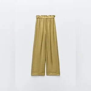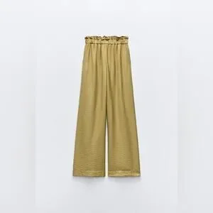 Zara WIDE LEG GATHERED WAIST PANT Size Large