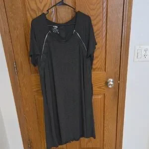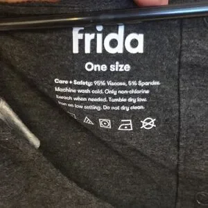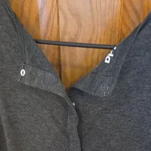 Frida Mom gray Hospital gown with short sleeves. Scoop neckline and relaxed fit. Snap buttons on each side (front) for easy skin-to-skin access or breastfeeding. Full buttons top to bottom on back. Never worn.