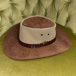 Jacaru Australia "Summer Breeze" Leather/Suede/Mesh Wide-Brim Hat Size Med/Large