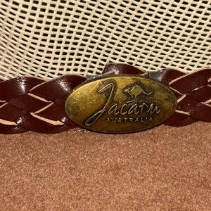 The Jacaru Australia "Summer Breeze" Leather/Suede/Mesh Wide-Brim Hat in size Medium/Large is the perfect accessory for casual occasions during the summer season. Made in Australia with a solid brown color, this cowboy hat features a wide brim to provide excellent sun protection. Crafted from high-quality leather and suede materials, this hat from the brand Jacaru adds a stylish touch to any man's wardrobe.