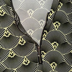Stylish top with striking geometric design. Comfortable and versatile.