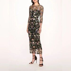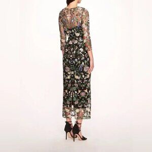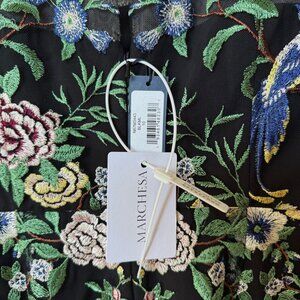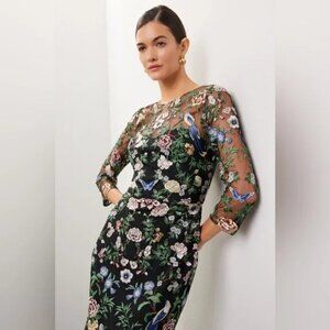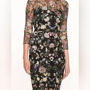 NWT Marchesa Notte Floral Embroidered On Tulle Midi Dress Size 10