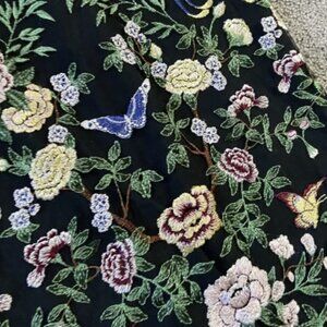 Symetrical botanical embroidered tulle over black lining, offers an aesthetic of modern romance and ethereal elegance.