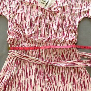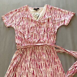 NWT Inc. Dress Pink White Slip-on Lightweight Midi Women Short Sleeves Size Medium