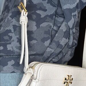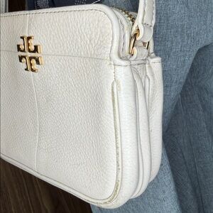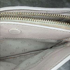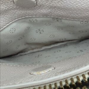 Tory Burch EUC leather very light blush color Crossbody bag lots of storage storage in the front storage in the back storage in the middle with zipper like new condition