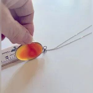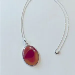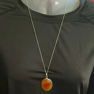 14K White Gold Chain Amber Agate Pendant Necklace 925 Silver