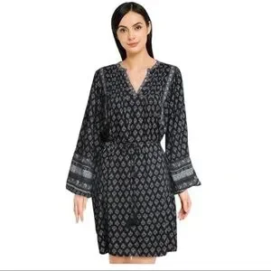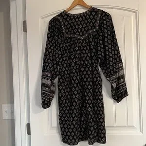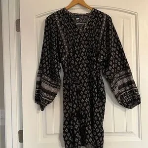 Old Navy boho Floral-Print Split-Neck Swing Blouson Sleeve Dress M
