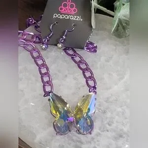 Paparazzi Purple and Iridescent Butterfly Necklace Set