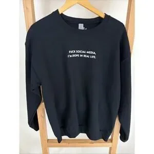 NWT Girl Gang Black Social Media Funny Crewneck Sweatshirt Top #0933 Size S