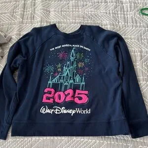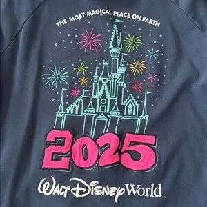 Official Walt Disney World pullover with bright castle graphic. Bold 2025 numbers in vivid pink. Multicolor fireworks add festive detail. Comfortable everyday sweatshirt for kids.