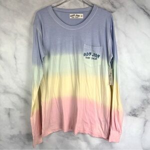 NWT Ron Jon Surf Shop Pastel Rainbow Tie Dye Long Sleeved Pocket T-Shirt Tee M