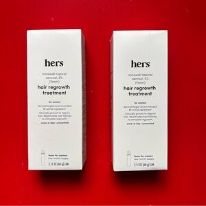 *NEW* Two boxes of Hers white topical hair re-grow foam for women. Expires August 2026.