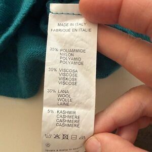 Hekla & Co. Italy Cashmere Wool Teal Bell Sleeve Ribbed Knit Sweater Luxury Chic