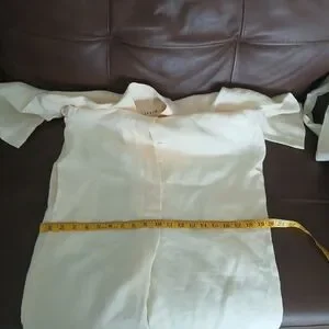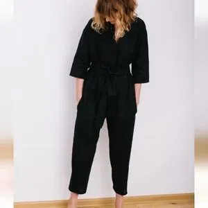 NWOT OFFON V-neck Linen Jumpsuit. Sleeve length: 3/4 sleeves. Leg length: Ankle. Belted. Color Ivory. Please see the photos for the measurements