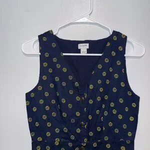J.Crew Navy Sleeveless Button-Front Dress With Yellow Floral Print Size 2
