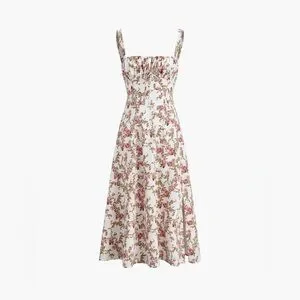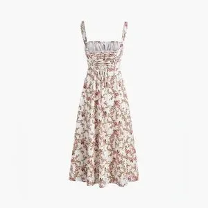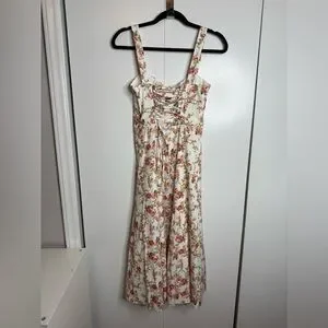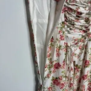 Commense Rosebud Floral Midi Sundress White Pink Slit Corset Small NWT