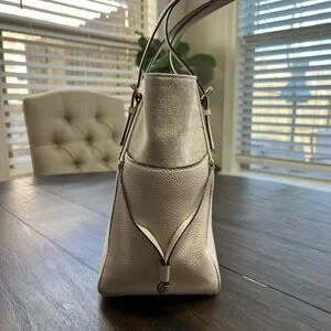 See pictures showing left side pocket with small scratch on leather where the bag rubbed up against something.