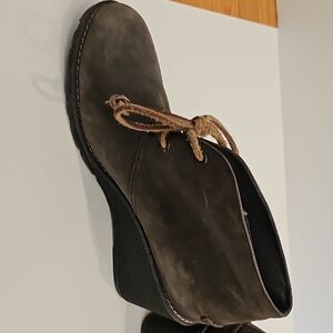 Elegant gray booties with lace-up design. Perfect for versatile styling. Good used condition. size 8.5. Leather uppers.