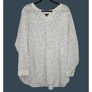 Talbots Women's 2x White Black Polka Dot Blouse Flowy Business Professional