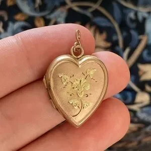 Antique 1930s Bliss Bros 10K Gold-Filled Engraved Floral Heart Locket