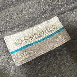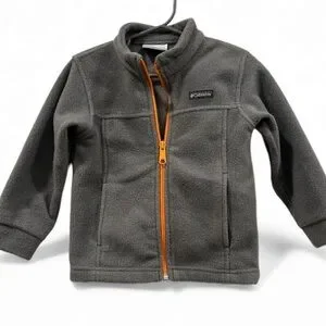 Charcoal fleece jacket by Columbia. Features a bright orange zipper. Warm and comfortable.