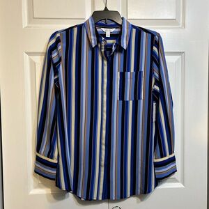 NWT Nine West Top Sz L Large Blue Striped Multicolor Button Front Long Sleeve