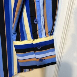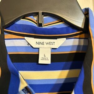 NWT Nine West Top Size L Large Blue Striped Multicolor Button Front Long Sleeves