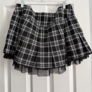 Current Mood Black & White Plaid Pleated Mini Skirt with Tulle