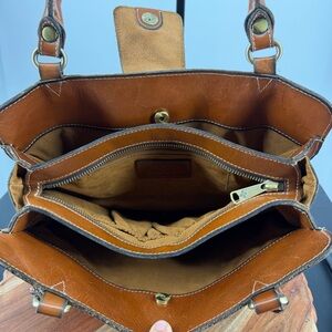 Patricia Nash Rienzo Satchel leather handbag tooled floral twisted rope handles