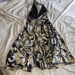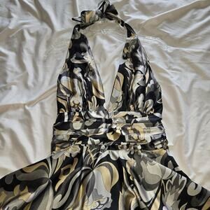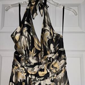 FAUST Paris Designer Geometric Halter Midi Dress Satin Size XS/S Satin EUC
