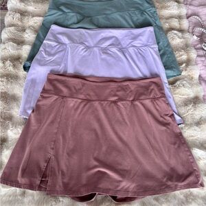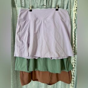 Cute skort set from Old Navy. All 3 sold as a set. One each in green, lavender, and clay. These are gently worn and in good used condition. Cotton poly with stretch. Great for yoga or lounging. Make an offer!