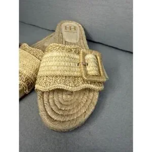 Haute Hippie Nyssa Gold Woven Espadrille Slide Sandals Womens 8.5M Buckle Boho
