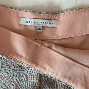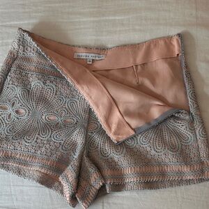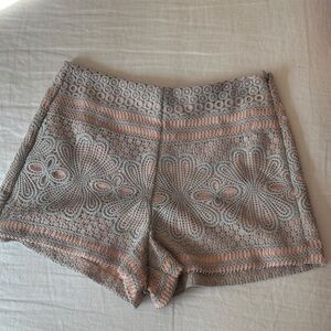 Chic high waist shorts with intricate lace design. Features a stylish blend of gray and pink. Perfect for any occasion.
