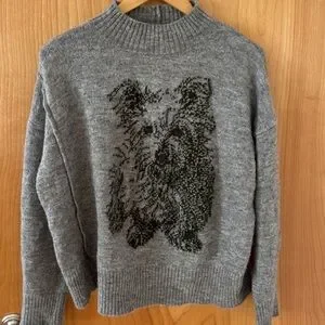 MOTH Anthropologie Schnauzer Dog Graphic Knit Sweater Mock Neck Pullover MEDIUM