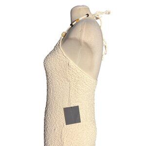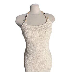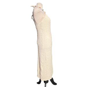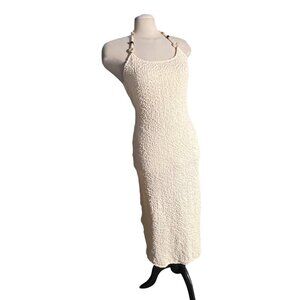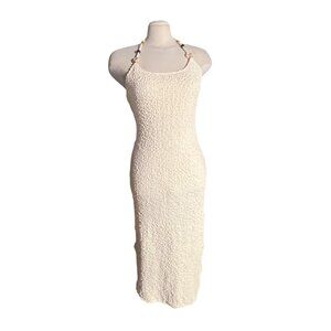 Lulus Meike Cream Textured Knit Beaded Halter Midi Dress Sz Large Womens Cream