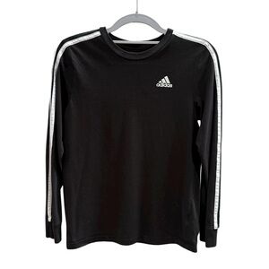 Classic adidas long-sleeve crew in black with white shoulder and sleeve stripes. Soft, breathable fabric designed for active play. Subtle adidas logo on the chest for sporty appeal. Easy to pair with jeans or joggers.